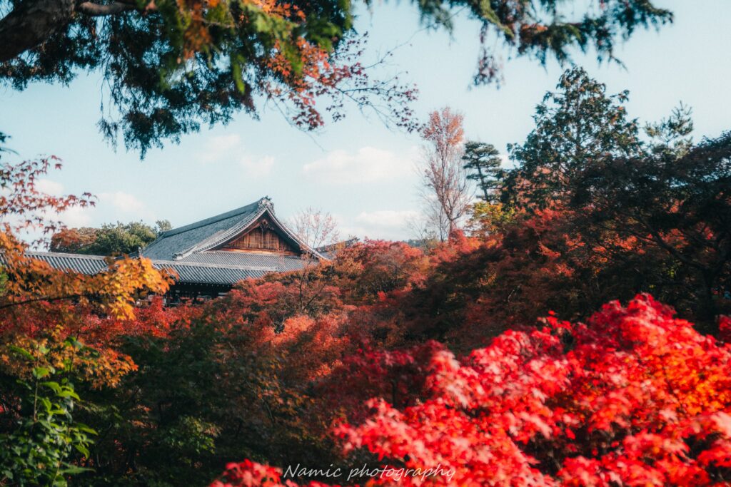 Tofuku-ji Temple is famous for its vast grounds and historic architecture. The view of the colorful leaves from the iconic Tsutenkyo Bridge is simply breathtaking. The temple grounds also feature many charming sub-temples (tatchu temples), each offering its own unique autumn scenery. In autumn, every path at Tofuku-ji is lined with vibrant maple trees, making it a perfect place for photography.