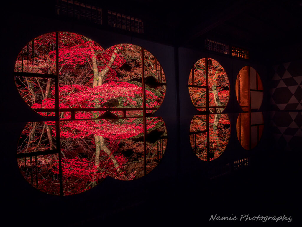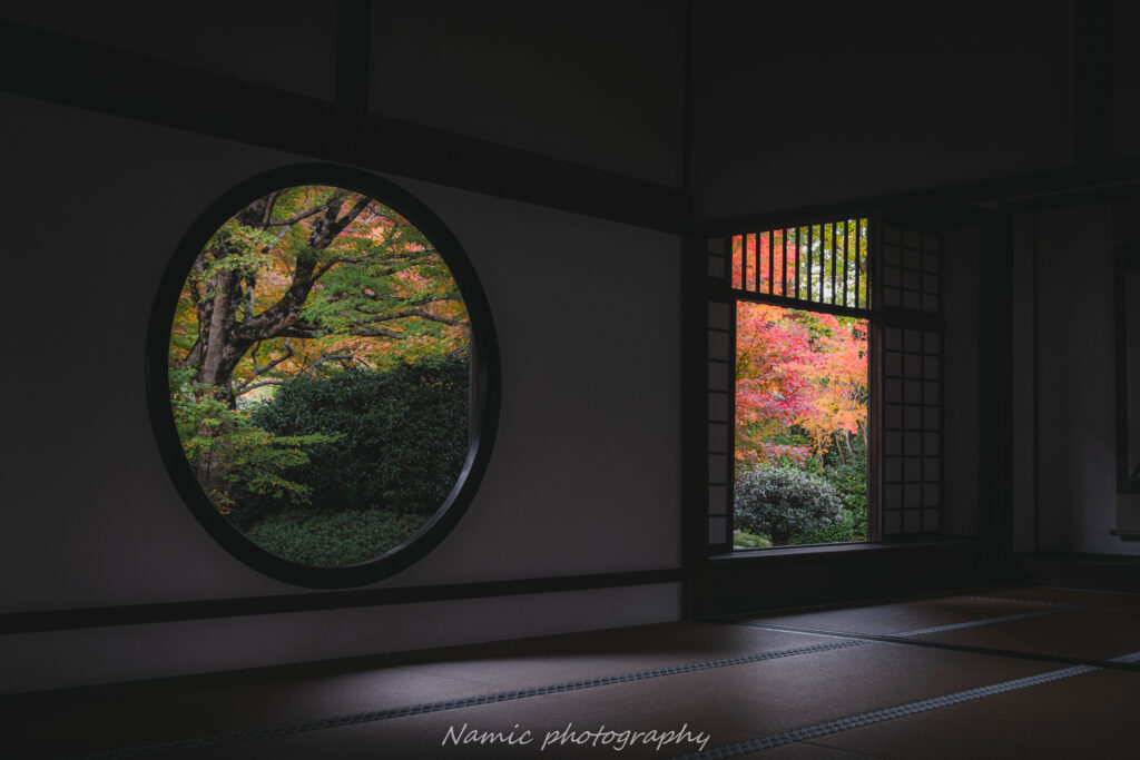 A Zen temple known for the iconic “Window of Enlightenment” (round) and “Window of Delusion” (square).